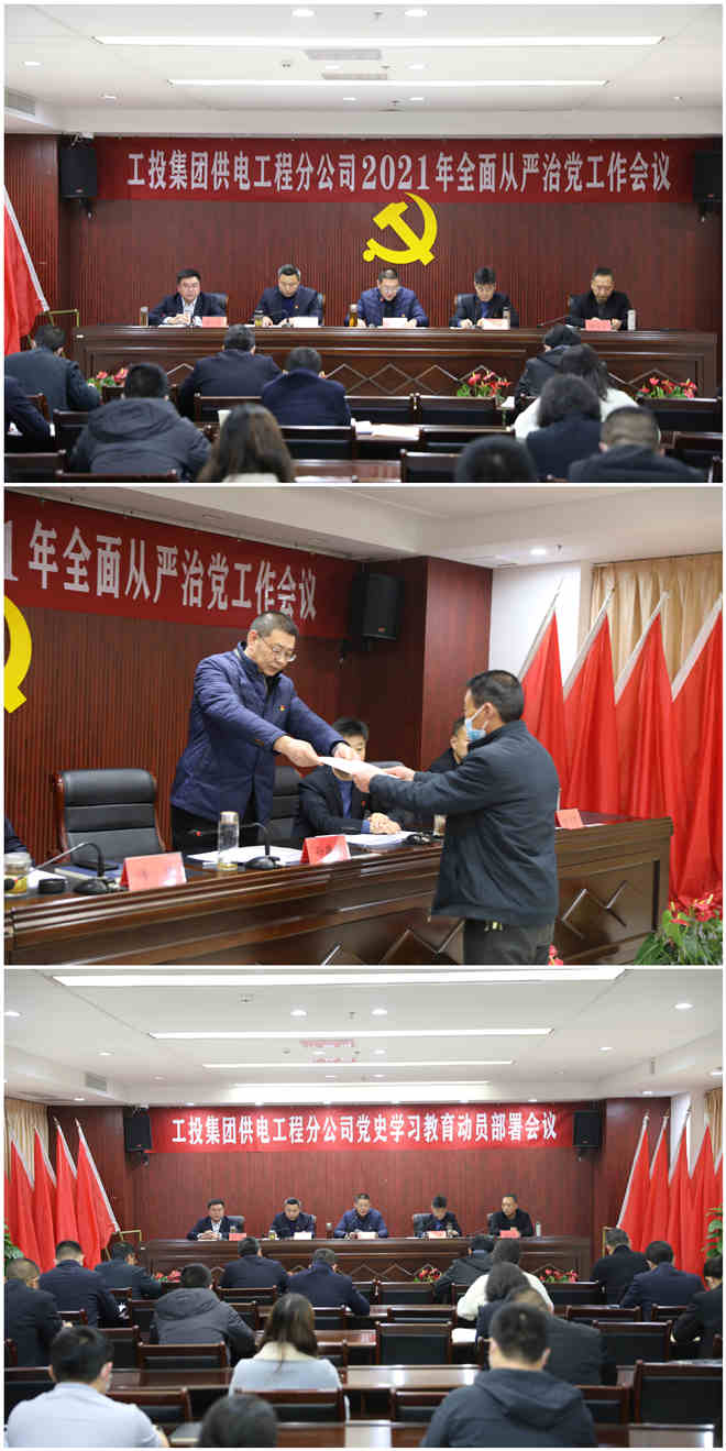 上半場,在公司2021年全面從嚴(yán)治黨工作會議上,全體參會人員首先觀看了全面從嚴(yán)治黨工作警示教育片。隨后,黨委書記、經(jīng)理孫政權(quán)在題為《強(qiáng)化政治建設(shè) 聚焦深度融合 以大黨建引領(lǐng)公司高質(zhì)量發(fā)展新征程》的黨委工作報(bào)告中指出,過去的一年,面對新冠疫情和經(jīng)濟(jì)下行的雙重壓力,公司黨委深入學(xué)習(xí)貫徹習(xí)近平新時(shí)代中國特色社會主義思想,以“不忘初心、牢記使命”主題教育為主線,扎實(shí)開展“雙融雙創(chuàng)”黨內(nèi)主題教育實(shí)踐活動,壓實(shí)管黨治黨責(zé)任、勇于直面困難挑戰(zhàn),推動公司經(jīng)濟(jì)在逆境中取得突破,黨建工作取得了顯著成效。報(bào)告強(qiáng)調(diào),2021年黨委工作的指導(dǎo)思想是:深入學(xué)習(xí)貫徹習(xí)近平新時(shí)代中國特色社會主義思想、十九屆五中全會精神等內(nèi)容,以“全面從嚴(yán)治黨”為統(tǒng)領(lǐng),以“黨史學(xué)習(xí)教育”為主線,以打造“工電先鋒”黨建品牌為抓手,扎實(shí)開展“奮進(jìn)新時(shí)代、領(lǐng)航開新篇”黨內(nèi)主題教育活動,以“大黨建”整合力量、凝聚人心,發(fā)揮黨的關(guān)鍵引領(lǐng)作用,將黨的政治優(yōu)勢轉(zhuǎn)化為發(fā)展優(yōu)勢。團(tuán)結(jié)帶領(lǐng)廣大干部員工,統(tǒng)一思想、凝聚力量,勇于擔(dān)當(dāng)、開拓進(jìn)取,加大改革創(chuàng)新、轉(zhuǎn)型升級、管理提升推動力度,開創(chuàng)工投供電高質(zhì)量發(fā)展新局面,以改革發(fā)展優(yōu)異成績向建黨100周年獻(xiàn)禮,為扛起“爭當(dāng)表率、爭做示范、走在前列”重大使命、奪取“十四五”發(fā)展開局首勝作出貢獻(xiàn)。圍繞上述總體要求,重點(diǎn)做好五個(gè)方面工作:持續(xù)深化政治建設(shè),推進(jìn)黨建經(jīng)濟(jì)深度融合;持續(xù)強(qiáng)化基層基礎(chǔ),構(gòu)建企業(yè)大黨建格局;持續(xù)推進(jìn)人才隊(duì)伍建設(shè),增強(qiáng)高質(zhì)量發(fā)展推動力;持續(xù)推進(jìn)黨風(fēng)廉政建設(shè),推進(jìn)全面從嚴(yán)治黨向縱深發(fā)展;持續(xù)推進(jìn)和諧企業(yè)創(chuàng)建,維護(hù)和諧穩(wěn)定發(fā)展的良好局面。