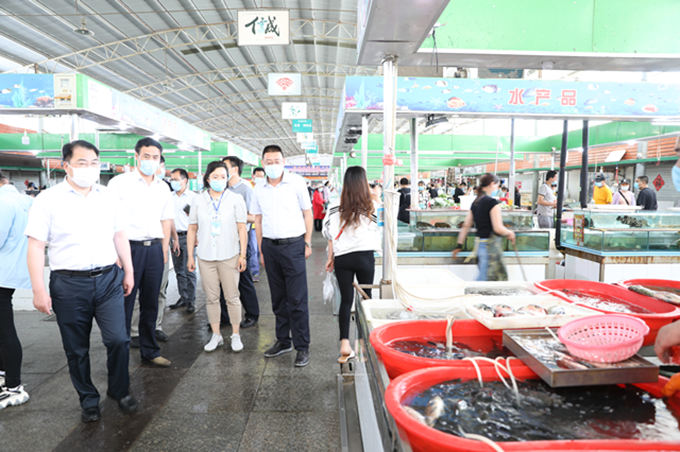 7月1日,集團(tuán)公司黨委副書記戴鴻鳴、總經(jīng)濟(jì)師陳如軍一行到巨龍農(nóng)貿(mào)市場(chǎng)檢查指導(dǎo)工作,公司黨委書記、總經(jīng)理孫政權(quán),副總經(jīng)理伏運(yùn)余陪同檢查。此次主要檢查市場(chǎng)疫情防控及雙創(chuàng)工作情況。(電宣)