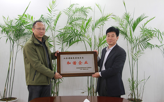日前,江蘇省模范勞動關(guān)系三方委員會辦公室印發(fā)《關(guān)于表彰江蘇省模范勞動關(guān)系和諧企業(yè)與工業(yè)園區(qū)的決定》(蘇協(xié)勞【2014】2號),授予公司“江蘇省模范勞動關(guān)系和諧企業(yè)”稱號。
