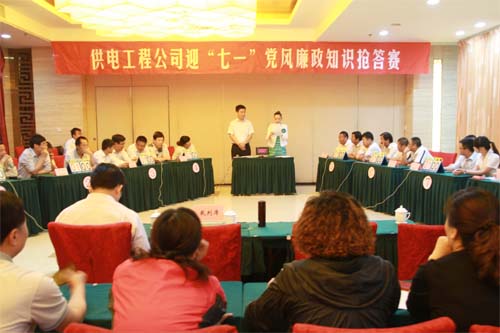 6月5日上午,公司“迎七一,頌黨恩,促勤廉”黨風廉政知識搶答賽在淮鹽大酒店金橋廳隆重舉行。來自公司基層單位及機關的七個代表隊參加了比賽。經過必答題、搶答題、風險題等7輪激烈緊張的角逐,最終,機關代表隊、臺北供電所代表隊、農場市場聯(lián)隊分獲前三名。公司機關及直屬單位全體人員觀看了比賽。