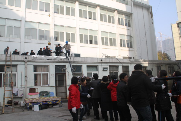 公司承擔集團公司ERP項目機房電纜工程,工期較緊。該工程電纜系低壓五芯電力電纜(240*3+120*2),總長230米,重近3噸。施工現(xiàn)場又處于金橋新村小區(qū)內(nèi),全靠人力施工,需要施工人員較多;而公司工程部和供電所工作人員大都正在忙于其它電力工程,能抽調(diào)的人員非常有限。為不誤工期,轉變工作作風,公司在領導班子親自帶隊,機關工作人員全體出動,齊心協(xié)力,拖、拉、拽、送,敷設電纜上墻,并吊送到位于五樓的ERP項目機房。