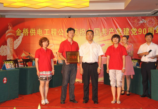 6月29日,公司舉行紀(jì)念建黨90周年知識(shí)搶答賽,共有八支代表隊(duì)參加。經(jīng)過(guò)角逐,公司機(jī)關(guān)黨支部代表隊(duì)、灌西供電所黨支部代表隊(duì)和徐圩供電所黨支部代表隊(duì)分獲一、二、三等獎(jiǎng)。(司宣)