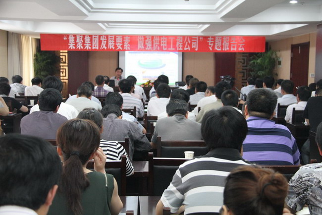6月20日下午,集團公司董事長、黨委書記顧永庚來到公司作了題為“集聚集團發(fā)展要素,做強供電工程公司”的專題報告,報告會由公司總經(jīng)理、黨委書記范益寶主持。公司領(lǐng)導(dǎo)班子及副科級以上管理人員聆聽了報告。