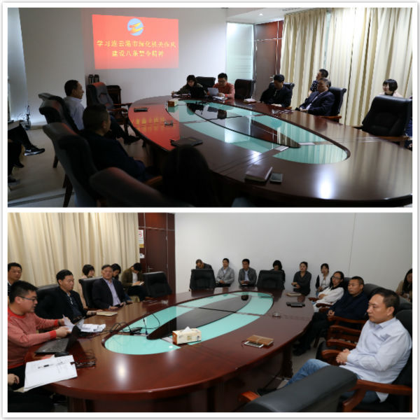 5月23日上午,機(jī)關(guān)全體黨員在公司1203會(huì)議室參加了學(xué)習(xí)市紀(jì)委《連云港市深化機(jī)關(guān)作風(fēng)建設(shè)八條禁令》通知精神的會(huì)議,機(jī)關(guān)黨支部書記朱兵主持會(huì)議并傳達(dá)了深化機(jī)關(guān)作風(fēng)建設(shè)八條禁令文件的精神及要求。