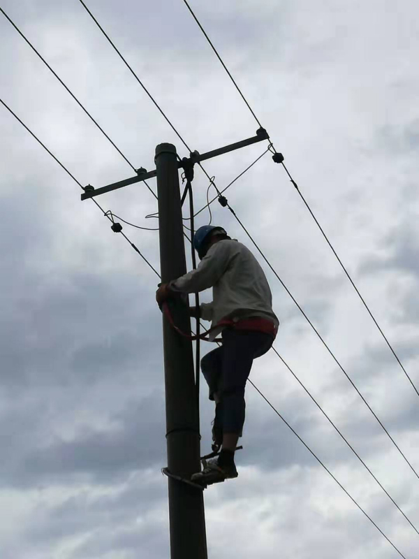 7月6日中午12時(shí),狂風(fēng)夾著暴雨突然而降。下午3點(diǎn)20分起,供電所值班電話一個(gè)接著一個(gè)?!按笮滤畮?kù)B標(biāo)84號(hào)低壓線被大風(fēng)刮碰一起已停電”、“黃下線41號(hào)變低壓線大風(fēng)刮碰起火”、“十七圩停電”、“勝利圩停電”、“81號(hào)變停電”。五個(gè)事故點(diǎn)居民上百戶,淡水池塘近千畝,鈴聲就是命令,值班電工王兜柱、盧正遷及時(shí)準(zhǔn)備好工器具,在風(fēng)小雨停間隔立刻奔赴現(xiàn)場(chǎng)逐一處理。一直奮戰(zhàn)到下午6點(diǎn),兩位同志才將所有故障處理完畢,帶著安心的微笑返回所里。(王學(xué)忠)