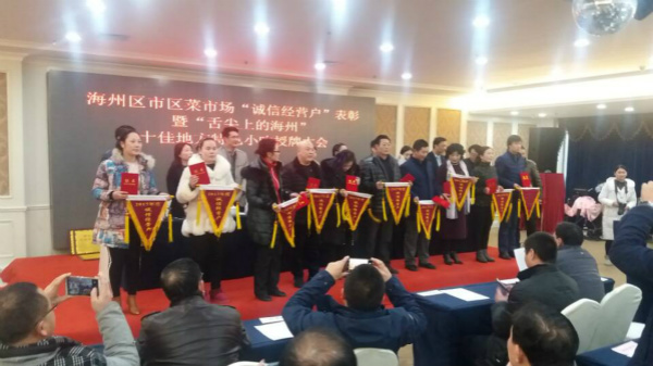 昨日,巨龍農(nóng)貿(mào)市場(chǎng)的3位商戶被評(píng)為海州區(qū)市區(qū)菜市場(chǎng)“誠(chéng)信經(jīng)營(yíng)戶”。(電宣)