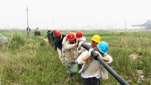 16日上午6點鐘左右,該所集合全部力量趕赴縱4路工程現(xiàn)場。在施工過程中,由于電纜線外套波紋管工作無法用機械完成,只能人工作業(yè)。該所除登高和外派作業(yè)人員外,其余人員密切配合,通力協(xié)作。他們不分工種、不計得失、不遺余力,喊著口號、邁著步子,用肩膀抗著波紋管,一步一個腳印,終于在中午12點成功將150米電纜套上波紋管。結(jié)束后才發(fā)現(xiàn)很多人的肩膀都磨出了淤血。為了搶在市網(wǎng)送電之前完成線路改造,該所在中午1點左右繼續(xù)趕工,最終在3點前將線路鋪設(shè)到位。(張偉孫維兵)