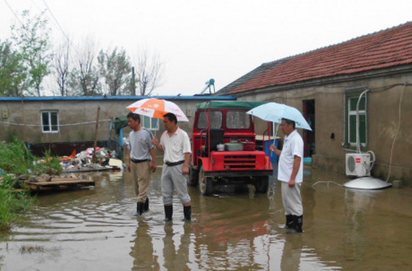 7月9日上午一上班,宋跳農(nóng)場場長趙懷忠?guī)ьI(lǐng)任志明、駱功勛、孫習年、于懷前等同志檢查場區(qū)和居民區(qū)。在整個暴雨過程中,居民區(qū)房屋沒有發(fā)生險情,但地面積水較多,對個別居民用電不符合規(guī)范的,要求立即整改。清源水泥制品廠的石棉瓦大棚局部有坍塌危險,該場當時就下發(fā)整改通知單,限期7月20日前完成。農(nóng)戶棉花地局部受淹,農(nóng)田積水于當天下午基本排掉。場區(qū)基本沒有積水,但辦公室在暴雨過程中有漫水現(xiàn)象。職工上班后,清掃辦公室衛(wèi)生,陸續(xù)恢復(fù)正常辦公。(任志明)