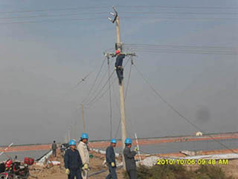 國慶期間,灌西供電所全體職工堅守崗位,工作在中國華能風力發(fā)電接電線路、集團公司礦鹵二期工程作業(yè)施工現(xiàn)場。(圖為工人正在架設線路)(楊守全)