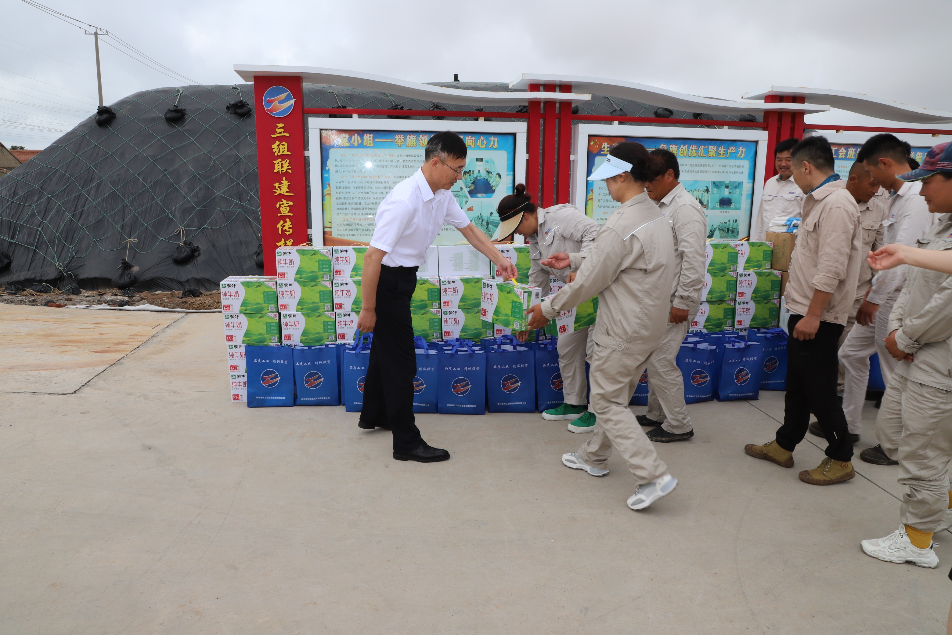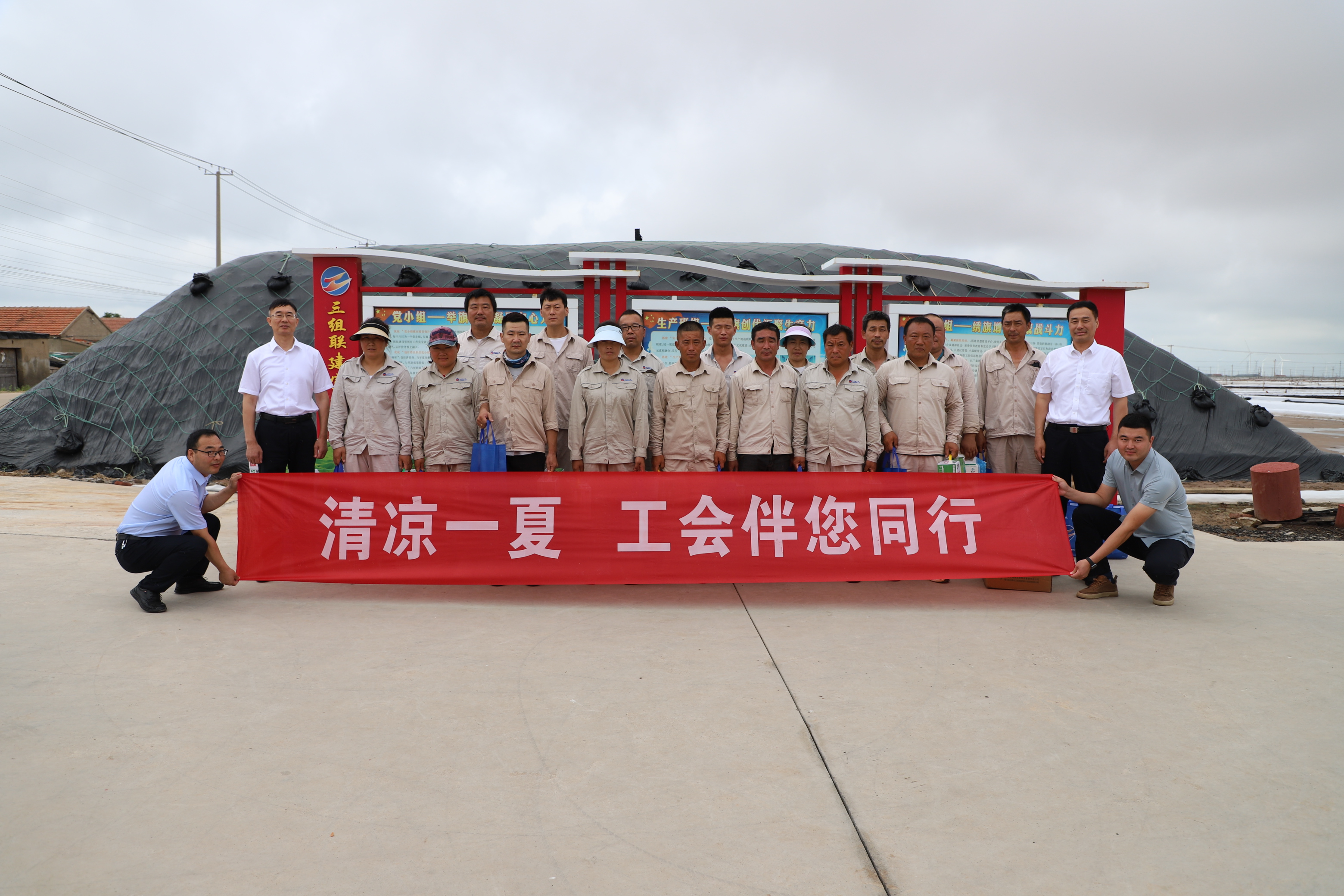 “高溫天氣,大伙兒一定要注意勞逸結(jié)合?!薄案兄x大家的辛勤付出,這些防暑物品僅是我們的一點(diǎn)心意?!睆埩忠恍衼淼饺諘裰汽}新河分公司八班灘頭,為他們送去綠豆、白糖等慰問品。一聲問候、幾句家常,緩解了鹽工們的疲憊,讓他們感受到了實(shí)實(shí)在在的溫暖。