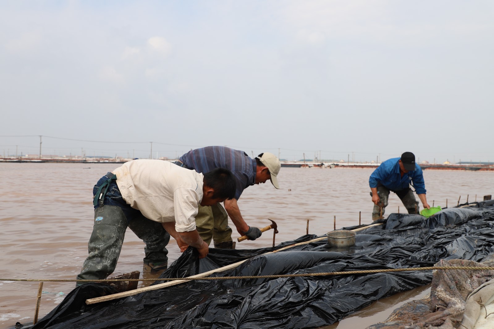 同心支援有溫度。受當(dāng)晚突發(fā)的狂風(fēng)暴雨強(qiáng)對流天氣,導(dǎo)致日曬制鹽公司38根電線桿被暴風(fēng)折斷、60塊結(jié)晶池塑布受損,20塊塑布需要更換,130余間值班房及機(jī)房屋頂瓦面損壞,給鹽業(yè)生產(chǎn)造成嚴(yán)重安全隱患。6月14日凌晨5點(diǎn),來自于該公司各條戰(zhàn)線近180人,支援搶險搶時搶工,進(jìn)行結(jié)晶池塑布安裝、廢棄物清理等工作;來自灌西供電所、徐南供電所的兄弟單位14名專業(yè)電工,第一時間到生產(chǎn)現(xiàn)場進(jìn)行清除電力故障、更換電線桿等電力工程作業(yè)。充分展現(xiàn)我們工投人在困難面前同力協(xié)契、踔厲奮發(fā)的拼搏精神,為企業(yè)高質(zhì)量的安全發(fā)展奠定堅實(shí)基礎(chǔ)。