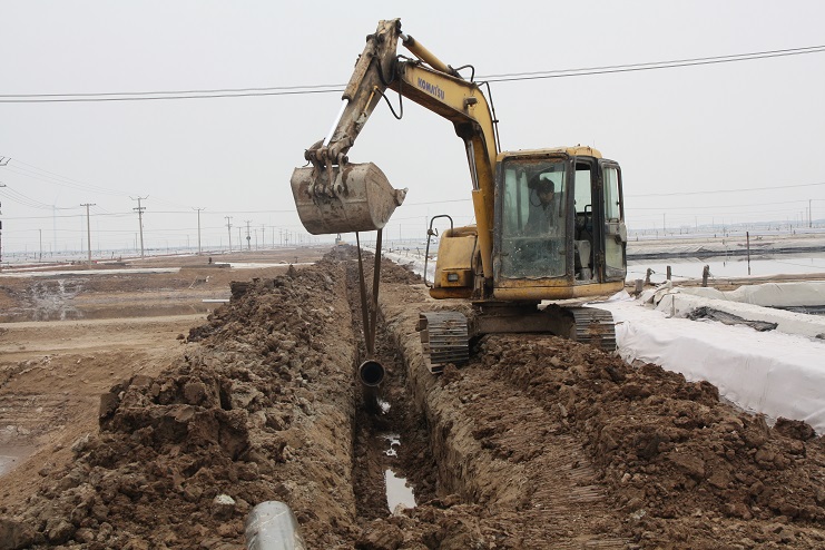 4月5日上午,日曬制鹽公司灘頭機械轟鳴,兩臺挖掘機正按照事先分工,有序的將深埋在地下的廢舊除硫管道挖掘出來。據(jù)了解,這些廢舊除硫管道按照原先設計,主要用于承擔鹵水除硫后的輸送工作,后因生產(chǎn)工藝的改進,導致管道一直處于閑置狀態(tài)。而此次回收并再次利用這些管道主要是為了在進一步改進生產(chǎn)工藝的基礎上,最大化節(jié)約生產(chǎn)成本。據(jù)介紹,目前日曬制鹽公司在生產(chǎn)中主要采取串聯(lián)式加鹵的方式進行,除硫后的鹵水無論輸送至哪一格塊,都必須按照先后順序依次經(jīng)過前排格塊,這不僅大大降低了輸送效率,也不利于對鹵水的有效管理,更造成了一部分浪費。相比較而言,通過改串聯(lián)式加鹵為并聯(lián)式加鹵后,鹵水將會從除硫池直供缺鹵格塊,在提高供鹵效率的同時,也能夠有效降低跑冒滴漏現(xiàn)象的發(fā)生。