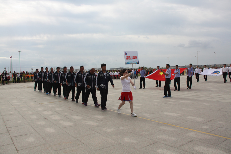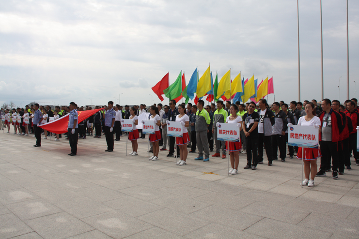 9點整開始舉行開幕式,在雄壯的《運動員進行曲》中,8名司旗手分別手托國旗和集團公司司旗,24名彩旗手高舉五彩旗首先入場。緊接著,灌西代表隊、臺北代表隊、供電代表隊、黃化制鈣代表隊、利海代表隊、氯堿代表隊、徐圩代表隊、機關(guān)代表隊、華茂代表隊、房地產(chǎn)代表隊、氨綸代表隊、新材料代表隊12支代表隊、130余名運動員以及裁判組成員依次入場。
