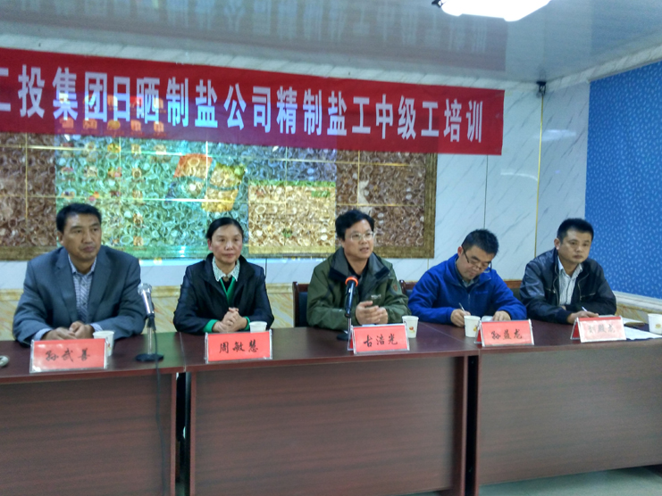 10月27日,日曬制鹽公司精制鹽工(中級工)培訓班在生產(chǎn)服務公司會議室舉行開班儀式,來自新河、埒南制鹽分公司的管理人員、班組長和青工骨干50余人報名參加學習。公司副總經(jīng)理古浩光,連云港市人社局就業(yè)訓練中心、職業(yè)鑒定指導中心主任孫益龍,連云港市振華專業(yè)技術(shù)學校校長周敏慧出席開班儀式。