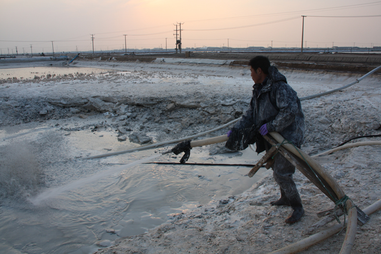 11月30日下午,我們在埒南制鹽分公司十一班看到,該班組員工在班長章保衛(wèi)的帶領(lǐng)下,正有條不紊的進(jìn)行著灘地整理工作,據(jù)其介紹,在扒鹽工作結(jié)束后,該班就立即轉(zhuǎn)入到大干冬準(zhǔn)工作中,目前,除了做好灘地整理工作以外,重點(diǎn)是對除硫池進(jìn)行清理。在他的帶領(lǐng)下,我們來到該班二期除硫池旁,看到兩名工人正在池內(nèi)進(jìn)行著忙碌的硫酸鈣清理工作。池內(nèi)的硫酸鈣已經(jīng)堆積很多,有近一米高,據(jù)章保衛(wèi)測算,該除硫池內(nèi)大概已有硫酸鈣2000余立方。為了不影響明年鹵水除硫工作的正常開展,他安排兩名工人專門進(jìn)行清理工作,每天從早上7點(diǎn)開始進(jìn)場清理,直到下午5點(diǎn)結(jié)束,預(yù)計(jì)至少要20天以上才能全部清理完成。下一步該班還將按照“九項(xiàng)工程”要求,對灘地設(shè)施進(jìn)行逐一篩查,以實(shí)際行動大干冬準(zhǔn),為明年鹽業(yè)生產(chǎn)工作有序開展做好準(zhǔn)備。(封楊)