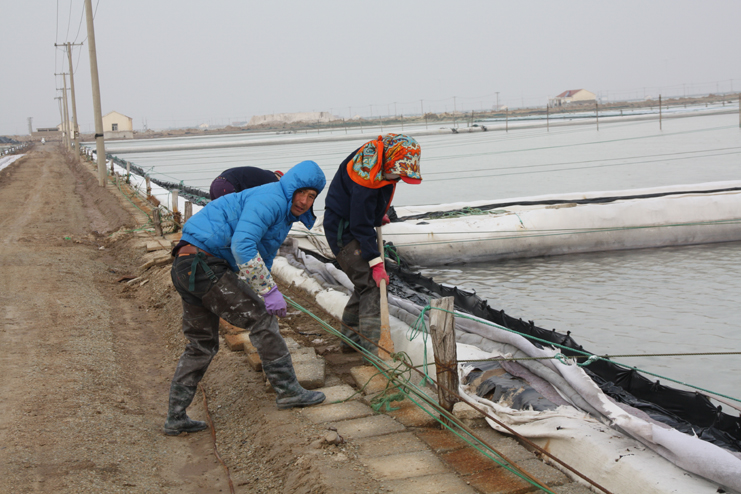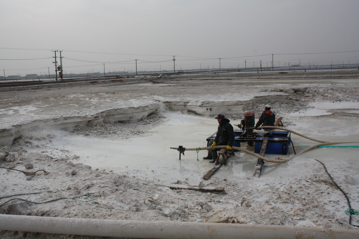 2月6日上午,在新河制鹽分公司的九班,我們看到工人們正在下馬格內(nèi)和格,為盡快灌池生產(chǎn)打好基礎(chǔ),在十班,工人有的正在清除硫酸鈣,有的修整結(jié)晶池埝,而在八班的灘頭,一臺(tái)挖掘機(jī)正在鹽廩上裝鹽銷(xiāo)售,日曬制鹽公司廣大員工掀起春季生產(chǎn)熱潮,處處都是忙碌景象。據(jù)了解,隨著市場(chǎng)回暖,日曬制鹽公司的原鹽銷(xiāo)售較前兩年同期無(wú)論是在數(shù)量上,還是在價(jià)格上都有所增長(zhǎng)。為了抓住這一難得的銷(xiāo)售機(jī)遇,不斷擴(kuò)大市場(chǎng)占有率,公司計(jì)劃組織兩個(gè)制鹽分公司在近期開(kāi)展扒鹽工作,以確保原鹽銷(xiāo)售工作不中斷。為此,各生產(chǎn)單位緊緊圍繞這一工作重心,在抓好日常生產(chǎn)的同時(shí),精心做好扒鹽前的各項(xiàng)準(zhǔn)備工作,努力確保扒鹽工作正常有序開(kāi)展。與此同時(shí),部分尚不具備扒鹽條件的班組則抓緊時(shí)間做好除硫池清理、撤格池板的整平以及土工布更換等工作,為春季生產(chǎn)做好各項(xiàng)準(zhǔn)備工作。(封楊)