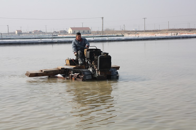 日前,筆者在走訪日曬制鹽公司時看到,在埒南制鹽分公司七班的鹽池內(nèi),一臺“唐三零”扒鹽機正在進行扒鹽工作,池埝上機泵運作時的轟鳴聲回蕩在鹽灘上,標志著日曬制鹽公司今年的春扒戰(zhàn)役正式打響。