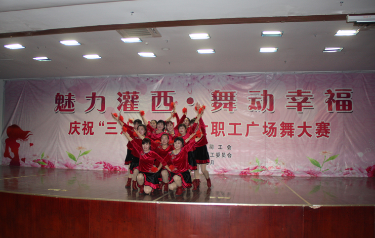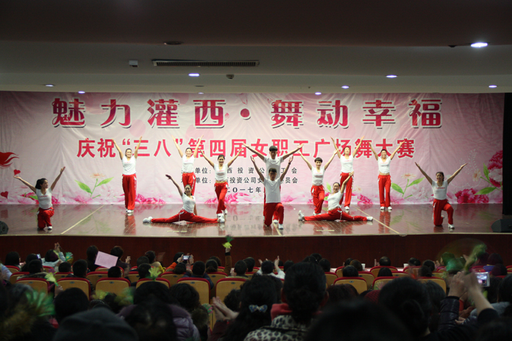 3月8日下午,灌西投資公司第四屆“魅力灌西•舞動(dòng)幸福”廣場舞比賽在灌云縣臨港產(chǎn)業(yè)區(qū)管委會(huì)禮堂舉行,由公司各單位的女工組成的8支代表隊(duì)參加角逐,廣大女工用婀娜的舞姿和精彩的表演慶祝國際“三八”婦女節(jié)的到來,觀看比賽的職工群眾有400余人。