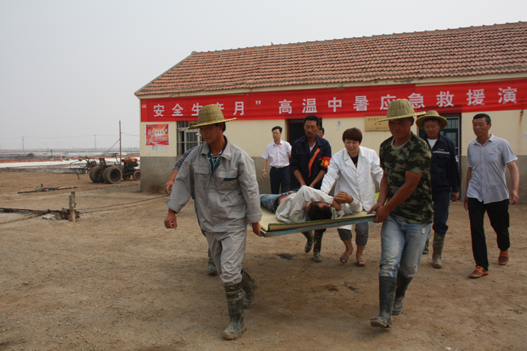 為了加強公司全員的安全預防意識,增強應對緊急事件的自我保護和防衛(wèi)能力, 6月29日上午,灌西投資公司在新河制鹽分公司九班聯(lián)合舉行“高溫中暑應急救援演練”活動,公司副總經(jīng)理古浩光、各單位分管安全領導、日曬制鹽一線班組長參加觀摩。