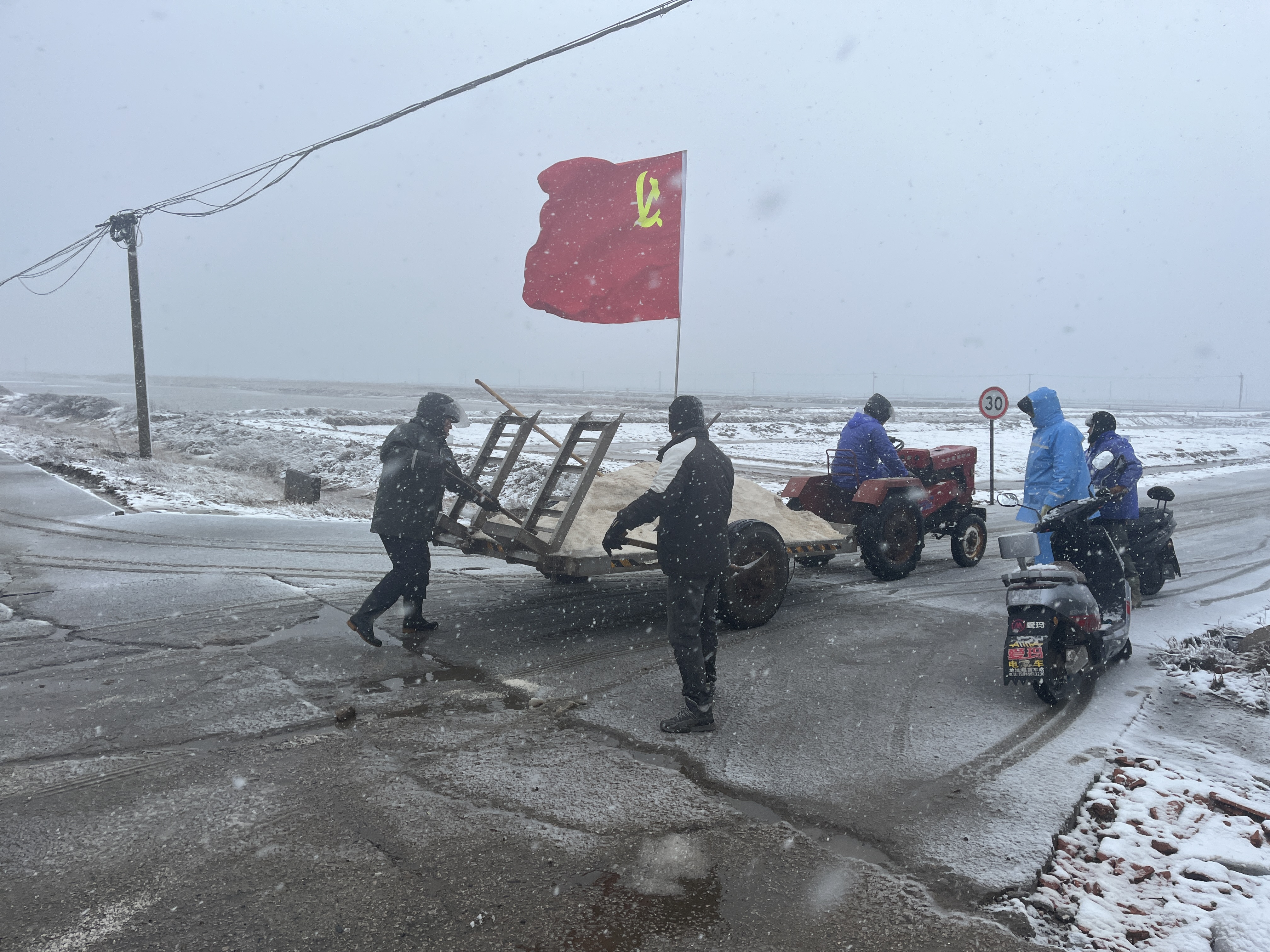老黨員黃兆柱不惜班組產(chǎn)量,主動(dòng)提供“融雪鹽”。祝星星、匡洪忠等不畏嚴(yán)寒、鉚足干勁,手拿鐵鍬撒鹽、鏟雪。同時(shí),還積極組織大家清掃各自區(qū)域內(nèi)積雪,共同守護(hù)職工出行安全。經(jīng)過大家的努力,南北長(zhǎng)約5公里的道路已全部撒上“融雪鹽”。下一步,新河支部黨員先鋒隊(duì)將密切關(guān)注天氣變化,全力保證職工上下班道路交通安全。