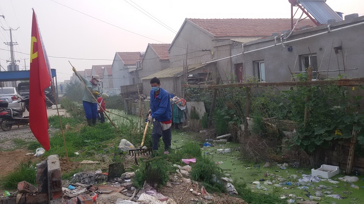 6月20日早6點(diǎn)15分,在中二圩順?biāo)兰芭潘疁蟽蓚?cè)已經(jīng)站滿了或用鐮刀除草或用釘耙打撈漂浮物的人,用力揮舞著手中工具干的熱火朝天。這是埒南制鹽分公司全體黨員和在職員工響應(yīng)投資公司黨委號(hào)召在開展環(huán)境整治活動(dòng)。