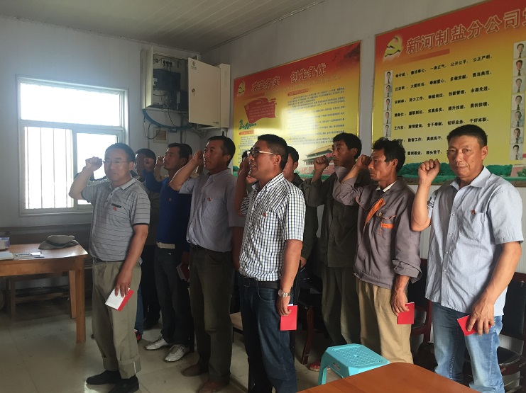 會(huì)議最后新河支部全體黨員重溫入黨誓詞。新河黨支部全體黨員起立。由支部書記李加新同志帶領(lǐng)大家宣讀誓詞。(新河支部程龍)