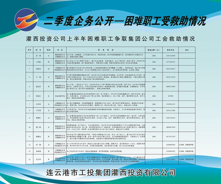 1、人員變動情況:莊忠明同志任埒南制鹽分公司黨支部副書記,免去埒南制鹽分公司副經(jīng)理職務(wù);葛高平同志任連云港宵洋物流公司黨支部書記兼工會主席;唐建軍同志任江蘇省西旺水產(chǎn)實(shí)業(yè)有限公司副總經(jīng)理;于同剛同志任連云港市灌西實(shí)業(yè)公司制鹽分公司經(jīng)理;唐廣付同志任新河制鹽分公司副經(jīng)理,免去柴門制鹽分公司工會主席職務(wù);王忠良同志任生產(chǎn)服務(wù)公司安全員。