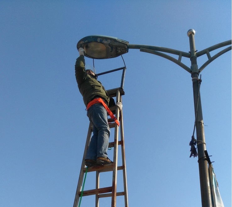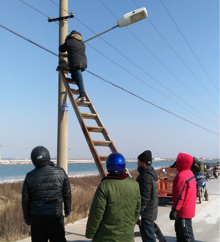 為增添節(jié)日氣氛,亮化場區(qū),機械設(shè)備服務(wù)中心接到場區(qū)及日曬鹽道路路燈維修任務(wù)后,班子成員高度重視,認真組織,積極籌備維修配件,并結(jié)合天氣形勢,對需要修理的60盞路燈,采取分段實施的辦法,于1月25日開始,他們本著安全第一的原則,搶時間爭速度,對日曬鹽道路路燈展開維修工作,繼而對場區(qū)中二圩街道路燈進行維修,職工們不畏嚴寒,加班加點,到1月31日將全部路燈維修結(jié)束。(圖為修理現(xiàn)場)