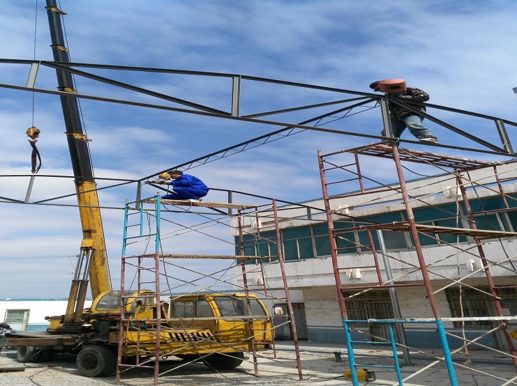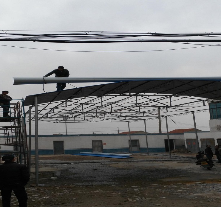 自4月初承接我場中二圩愛心市場大棚制作任務后,機電服務公司班子認真進行研究制作方案,購買優(yōu)質(zhì)材料,合理安排技術人員進行制作,做到多頭并進,加班加點,勞模王緒華、星級員工程洪連身先士卒,其他員工積極參與,到4月19日,全面、安全完成制作安裝任務。(圖為現(xiàn)場施工中)(胡亞東)