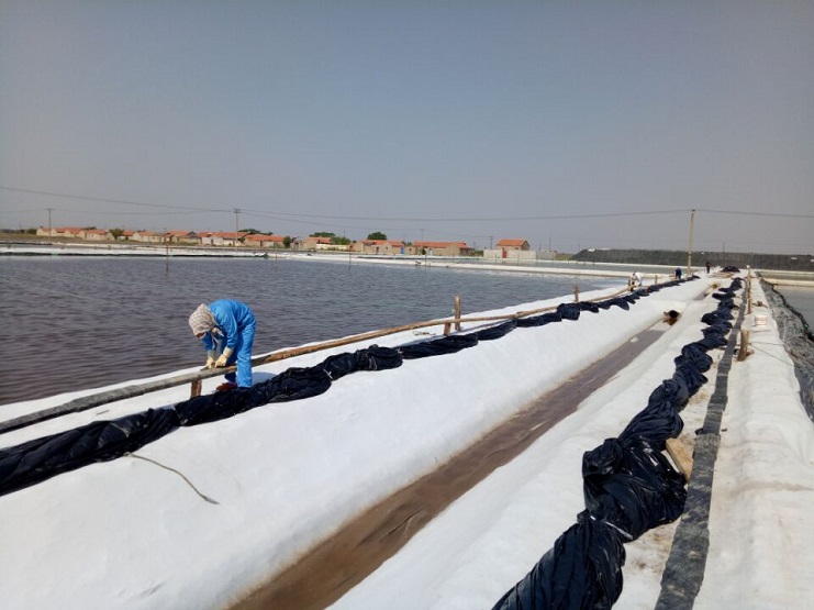 實(shí)業(yè)公司制鹽分公司、海鹽基地灘場(chǎng)文明建設(shè)正在進(jìn)行中。 分公司海鹽基地二班近階段正在上塑布。班組全員先壓浮板、裹浮板、釘老樁,裝布,目前該班組已上塑布三塊六十公畝,計(jì)劃上九塊一百八十公畝。(實(shí)業(yè)公司)