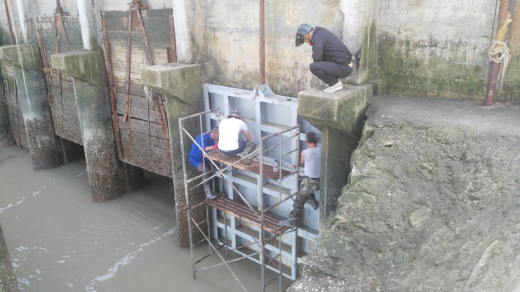 為確保機(jī)電設(shè)備運(yùn)行正常,按時(shí)供好水,服務(wù)好海水養(yǎng)殖業(yè)。連日來(lái),機(jī)電服務(wù)公司認(rèn)真組織好修理人員,對(duì)六圩閘站機(jī)電設(shè)備進(jìn)行修理維護(hù)。在市勞模、機(jī)修組長(zhǎng)王緒華的帶領(lǐng)下,所有參加人員不怕臟和累,趕潮水,對(duì)水泵、閘門(mén)、啟閉機(jī)等進(jìn)行維修作業(yè)。該組有6名修理人員,其中有3名是黨員,1名黨積子,他們能身先士卒,發(fā)揮了黨員先鋒作用,二星級(jí)員工程洪連能吃苦在前,臟了3套工作服,都沒(méi)有心疼。經(jīng)過(guò)近2周時(shí)間維護(hù)修理,共修理155KW水泵2臺(tái)、啟閉機(jī)1臺(tái),拆除木閘門(mén)、安裝鋼閘門(mén)各1塊、更新草擋2片。為正常開(kāi)機(jī)揚(yáng)水提供了保障。(機(jī)電服務(wù)公司)