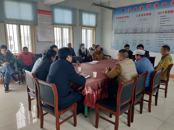 會上,實業(yè)公司支部書記沈玉波首先傳達(dá)了連云港市工投集團(tuán)有限公司和灌西投資公司職代會精神,總結(jié)2018年生產(chǎn)情況,下達(dá)2019年生產(chǎn)任務(wù),書記對柴門區(qū)海鹽基地生產(chǎn)作了下一步生產(chǎn)部署:一、清除灘場大米草,和格壓實,塑布更新準(zhǔn)備工作;二、緊抓制鹵工作;三、做好灘場文明。最后何總就安全問題給了幾點建議:安全行車不并排、安全生產(chǎn)、禁止養(yǎng)塘。(實業(yè)公司)