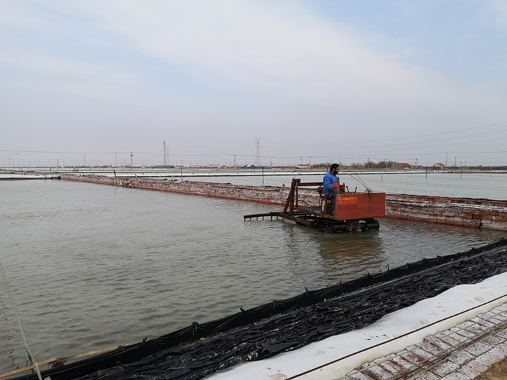 破碴勤、破碴透,才能保證原鹽生產(chǎn)的旺產(chǎn)增收。進(jìn)入2月下旬,雖然受新冠肺炎疫情影響,相關(guān)工作較往年延遲,但新河制鹽分公司科學(xué)組織,嚴(yán)密安排,根據(jù)春季扒鹽節(jié)奏,合理調(diào)配破碴機(jī)械,率先啟動原鹽破碴工作。在十班破茬碴現(xiàn)場,班組結(jié)晶池內(nèi)熱火朝天,只見一臺臺破碴機(jī)快速來回穿梭,正在對擬春扒格塊進(jìn)行機(jī)械破碴。勞模創(chuàng)新工作室成員、班長匡洪忠查看破碴的鹽池板后,臉上露出滿意的微笑,他說:“通過近幾年的小改小革,現(xiàn)在機(jī)械破碴格塊只要一個(gè)小時(shí)就全部到位,而且質(zhì)量比人工破碴好,大大地減輕了職工勞動負(fù)荷。”