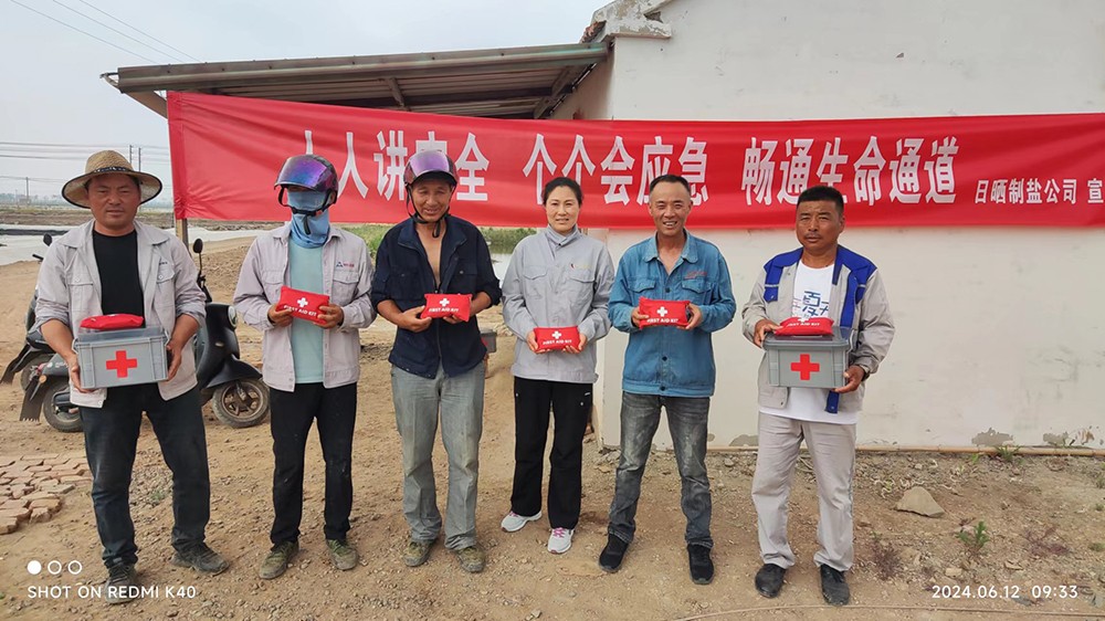 為切實(shí)保障職工在高溫季節(jié)戶外作業(yè)時(shí)的身體健康和安全,同時(shí)做好公司全體職工人人講安全,個個會應(yīng)急的要求。6月12日上午,海水鹽生產(chǎn)基地開展了防暑藥箱及個人應(yīng)急包發(fā)放活動。