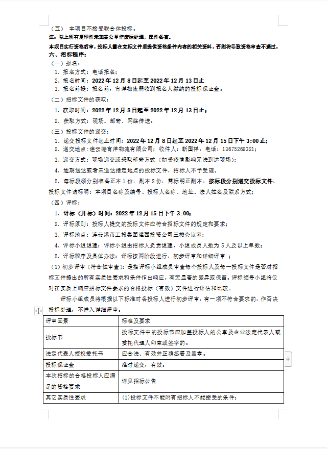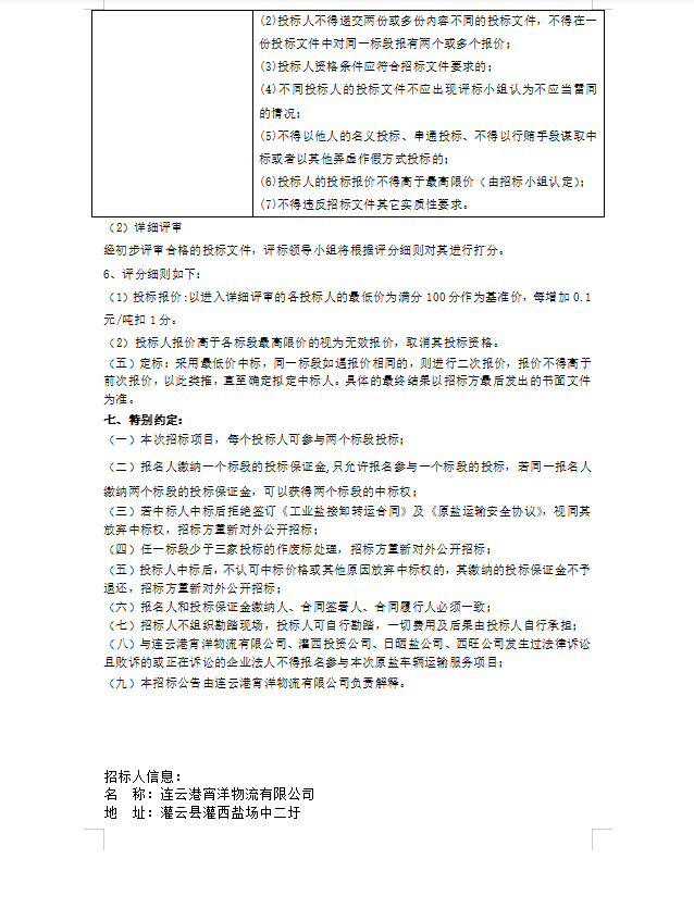 連云港宵洋物流有限公司原鹽異地轉(zhuǎn)運項目招標(biāo)公告
