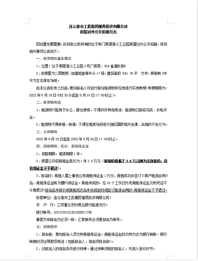 連云港市工投集團青口投資有限公司
