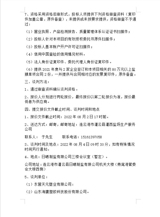 鹽膜競(jìng)爭(zhēng)性談判公告