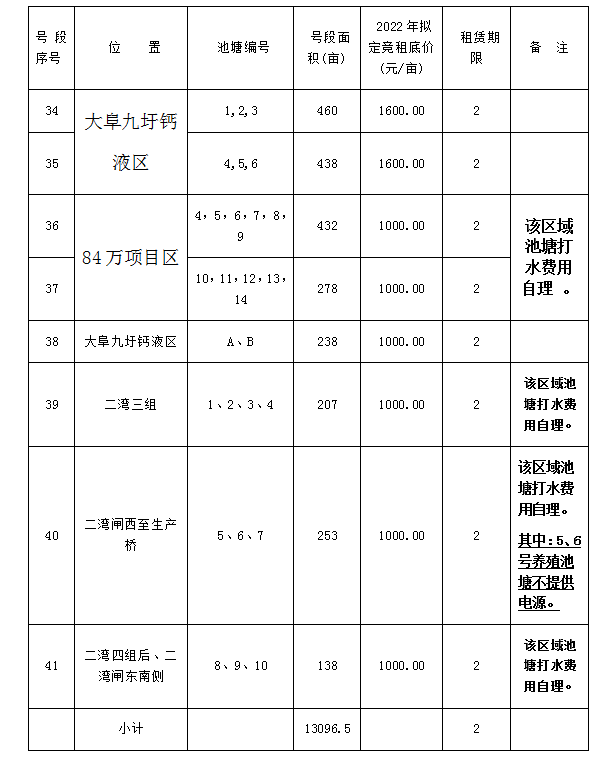 2022年價(jià)格按獲得池塘承租權(quán)的競租方報(bào)價(jià)執(zhí)行;2023年池塘租賃價(jià)格在其2022年租賃價(jià)格基礎(chǔ)上上漲30元/畝。