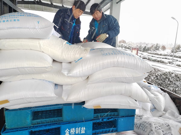 抓好“提前量”,做實(shí)保供應(yīng)。公司密切關(guān)注天氣變化情況,落實(shí)落細(xì)各項(xiàng)措施,全力確保應(yīng)急工作有效開展。按照集團(tuán)部署,迅速啟動融雪鹽保供應(yīng)急預(yù)案,生產(chǎn)部門提前調(diào)整生產(chǎn)計(jì)劃,開足馬力、釋放產(chǎn)能;銷售部門提前布置、統(tǒng)籌調(diào)運(yùn),確保融雪鹽配送車輛及時到位,不影響發(fā)運(yùn)。
