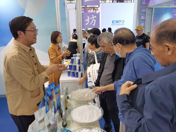 我公司代表集團(tuán)參加本次展會(huì),展示加碘精制鹽、顆粒鹽、雪花鹽、低鈉鹽等“古淮”“猴王”品牌的20余個(gè)食鹽品種,共接待2000多人次參觀。期間,省文旅廳黨組成員、副廳長(zhǎng)錢鋼等蒞臨展位觀摩指導(dǎo),對(duì)公司淮鹽文化傳承工作予以肯定。