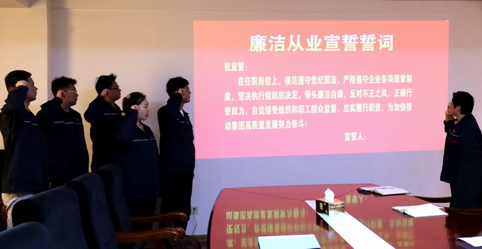 會議傳達(dá)了集團(tuán)紀(jì)委《關(guān)于扎實(shí)開展年輕干部“廉政教育月”活動的通知》文件精神,簽訂了《廉潔承諾書》、發(fā)放了《家庭助廉倡議書》和進(jìn)行廉潔從業(yè)宣誓。