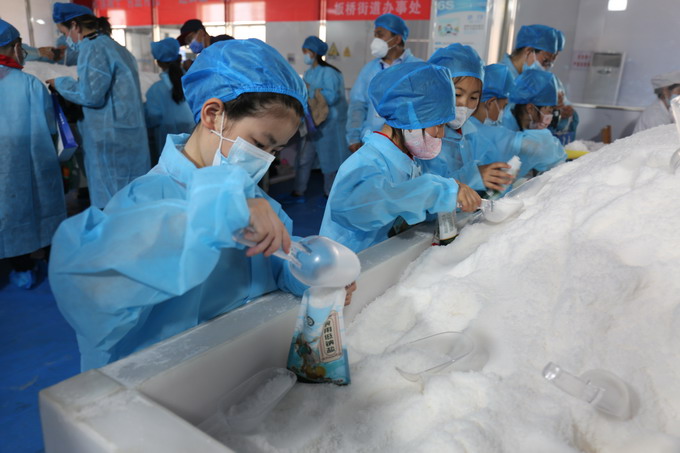 小朋友們首先參觀了包裝鹽車間生產(chǎn)線,對制鹽過程有了直觀的認識,接著來到雪花鹽車間體驗手工包裝,提升參與感、獲得感。此次參觀體驗活動,讓小朋友近距離感受家鄉(xiāng)的淮鹽魅力,很好的傳承了淮鹽文化。我公司作為省級文明單位,近年來,積極履行社會責(zé)任,多次與灌南縣尹蕩村、連云區(qū)大竹園村等單位開展文明共建,爭做文明使者,彰顯國企擔(dān)當(dāng)。(金宣)