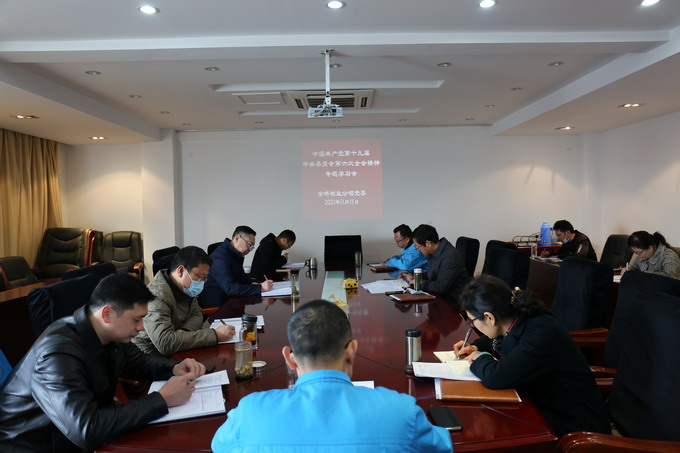 11月15日上午,我公司召開黨委理論中心組學習會,專題學習中國共產(chǎn)黨第十九屆中央委員會第六次全會精神。會議由公司黨委書記、董事長、總經(jīng)理朱桂玉主持,公司黨委班子及其他黨委理論中心組成員參加了學習會。