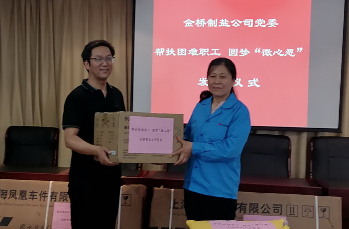 7月8日下午,公司黨委在三樓會議室舉行“幫扶困難職工 圓夢微心愿”發(fā)放儀式。公司黨委書記、董事長、總經(jīng)理朱桂玉和公司黨委副書記、工會主席曹開明為困難職工發(fā)放了“圓夢微心愿”物品。