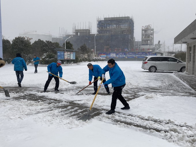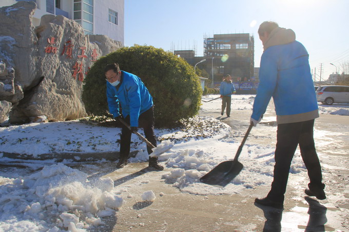 12月29日,連云港市各地普降大雪,氣溫低、積雪厚、道路結(jié)冰,給公司職工的安全出行和生產(chǎn)生活帶來很多不便。29-30日,公司領(lǐng)導朱桂玉、曹開明、田磊、何啟明、邵琴、李忠祥帶領(lǐng)廣大職工群眾開展了義務(wù)掃雪活動。大家冒著風雪,不畏嚴寒,對路面積雪進行清掃,鏟除了廠區(qū)主干道的冰層,保障了公司職工安全出行和安全生產(chǎn)工作的開展。(金宣)