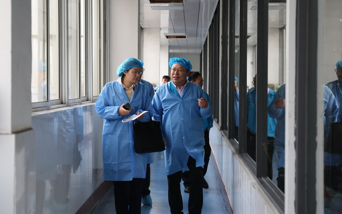 10月15日上午,連云港市市場(chǎng)監(jiān)督管理局食品生產(chǎn)處副處長(zhǎng)梁晶晶、顧為民帶領(lǐng)檢查員一行來我公司開展食鹽定點(diǎn)生產(chǎn)企業(yè)日常監(jiān)督檢查和飛行檢查。公司董事長(zhǎng)、黨委書記、總經(jīng)理朱桂玉,副總經(jīng)理田磊、何啟明陪同。