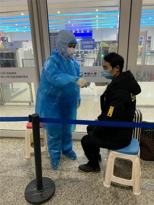 朱詠梅是來(lái)自江蘇金橋制鹽有限公司的普通員工,在連云港市志愿者協(xié)會(huì)的統(tǒng)一安排下,每天到連云港市高鐵站測(cè)溫點(diǎn)配合醫(yī)務(wù)人員為乘客檢測(cè)體溫,并協(xié)助醫(yī)務(wù)人員對(duì)體溫出現(xiàn)異常的乘客進(jìn)行復(fù)查。每天的服務(wù)都到深夜零點(diǎn),等到送走最后一位乘客才回家。