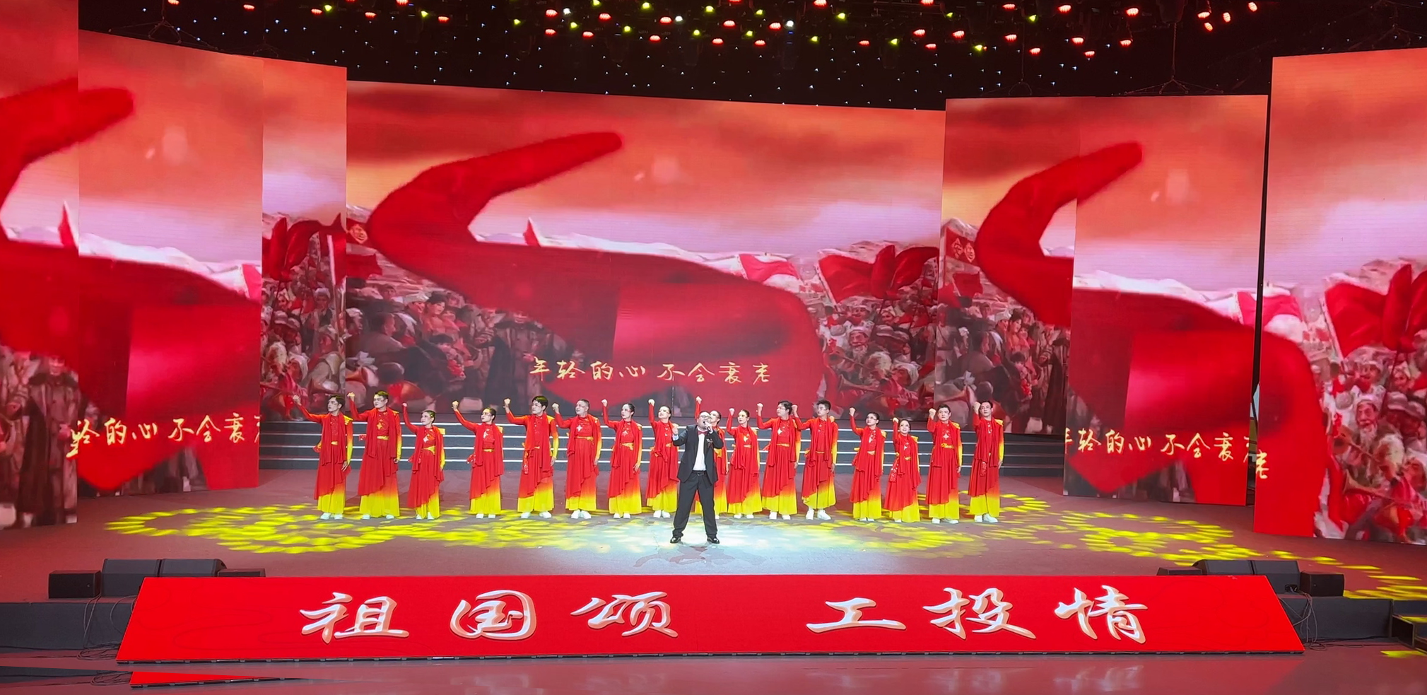 在演出舞臺上,一曲《紅旗飄飄》以夢幻般的旋律和激昂的歌詞展現(xiàn)了對祖國母親的熱愛之情。演出人員以高亢嘹亮的歌聲和美輪美奐的舞蹈,把對祖國母親的深情厚意演繹得淋漓盡致,讓現(xiàn)場的觀眾熱血沸騰、心潮澎湃?!都t旗飄飄》不僅歌頌了祖國的偉大,也抒發(fā)了廣大職工愛國愛企愛崗的深深情懷。(金鹽宣)