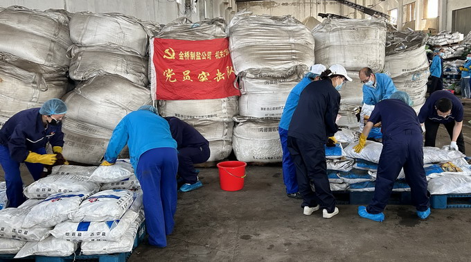 6月6日-6月7日,我公司黨委開展“我為黨旗增光添彩”志愿服務(wù)活動(dòng)。機(jī)關(guān)支部共30名黨員協(xié)助車間整理庫(kù)房,共整理成品鹽130余噸?;顒?dòng)的開展進(jìn)一步發(fā)揮了“兩個(gè)作用”,積極踐行了志愿服務(wù)精神,為車間一線辦實(shí)事、解難題。(金宣)