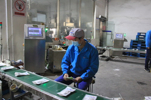 包裝鹽車間生產(chǎn)班長(zhǎng)王東海巡視生產(chǎn)線
